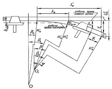 робочі грані рамної рейки і гостряка перетикаються у вістрі під кутом