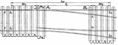 рейковій нитці. З іншої сторони переводу бруси розміщуються уступами у групах