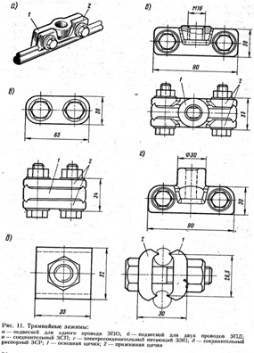 иметь цинковое покрытие. Зажимы ЗПО и ЗПД с закрепленными в них проводами