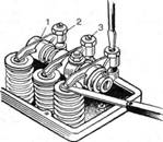 клапани у втулки відповідно до зроблених міток і зібрати їх із пружинами.