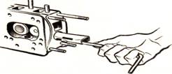 і регулювальних гвинтах і канали в задній стійці осі коромисел й у головці