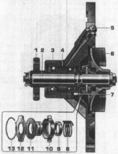 2 – планшайба прижимная; 3 – планшайба приводная; 4 – редуктор; 5 – подставка;