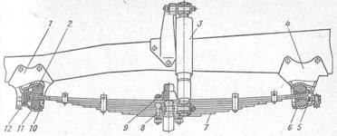 На рис. 9 показана балансирная подвеска грузового автомобиля ЗИЛ-131. Она