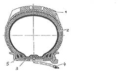 2 – пневмокамера; 3 – ободная лента; 4 – вентиль; 5- обод.