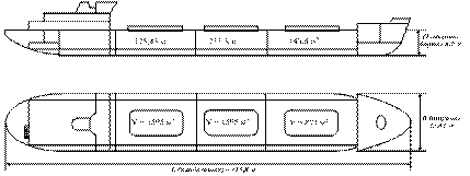 Однопалубное, двухвинтовое судно с тремя грузовыми трюмами, с