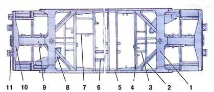 структуру средней части рамы включены две шкворневые балки 1 (рис. 6 1),
