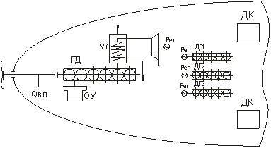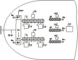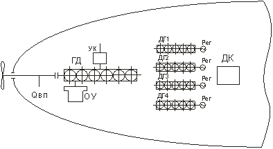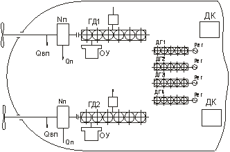 енергетичної установки входять 3ДДГ потужністю по 475 кВт кожний та допоміжний
