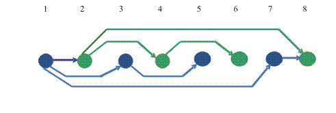 при изучении связаны друг с другом только каждые два соседних элемента.