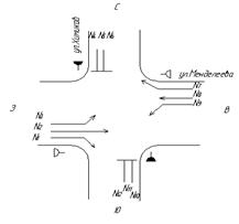 цикла и интенсивности транспортных потоков в каждой фазе.