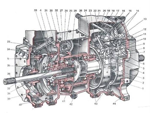 передачи и манжету уплотнения этой шестерни, накладки тормозных лент промыть