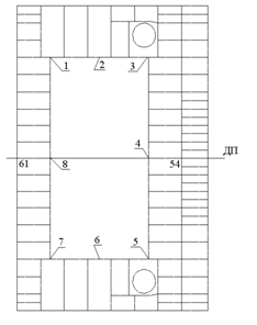 надстройки, поперечные переборки на 54 и 61 шп., выгородка в ДП от 52 до 54
