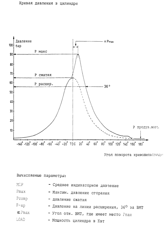 относительно ВМТ, при котором происходит Ртах. Load - мощность цилиндра в Квт