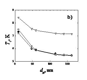 треугольниками острием вниз представлена теоретическая кривая Tc(dN),
