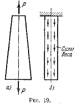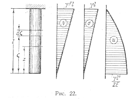 цилиндрического стержня, нагруженного силами собственного веса (рис. 22). Длина