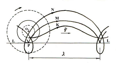 - обыкновенная циклоида; N - удлинённая циклоида; К -