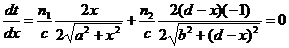 екстремальний час, якщо знайдемо, де звертається на нуль перша похідна від t по