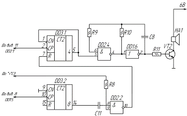 Він надходить на вхід звукового генератора (DD2.4, DD1.6). Динамік НА1 видає