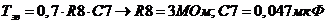= 0.7*R8*C7 = 0.7 * %.2e * %.2e = %.2e\n", r8, c7, 0.7 * r8 * c7 );