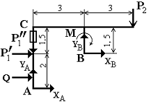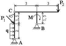 Задание: Найти реакции опор конструкции. Схема конструкции показана на рисунке 1.