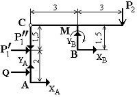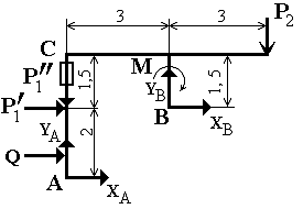 XA=-XB+RC∙cos30°-Q·sin45°=2,8+4,7-2,8=4,7кН