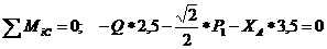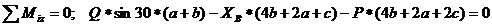 6) ∑MKZ=-XB·АВ-Q·AB·cos45°=0.