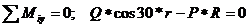 5) ∑MKY=G·AC/2·cos30°-RC·AC·sin60°+Q·AC·sin75°=0;
