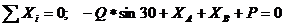 1) ∑FKX=XA+XB-RC∙cos30°+Q·sin45°=0;