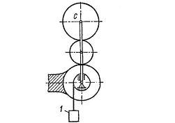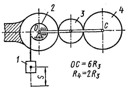 Массы тел - m1, m2, m3, m4; R2, R3, R4 - радиусы окружностей.