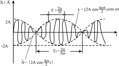 гармонічно пульсуючою амплітудою – биття.