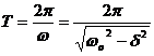 збільшенні коефіцієнта затухання період затухаючих коливань зростає і при