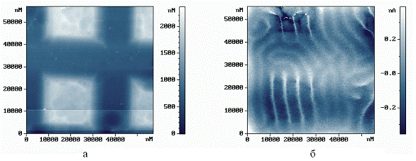 изображение топологии поверхности в полуконтактном режиме. На втором - при
