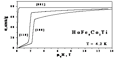 соединения Ho(Fe,Co)11Ti являются высокоанизотропными магнетиками (поле