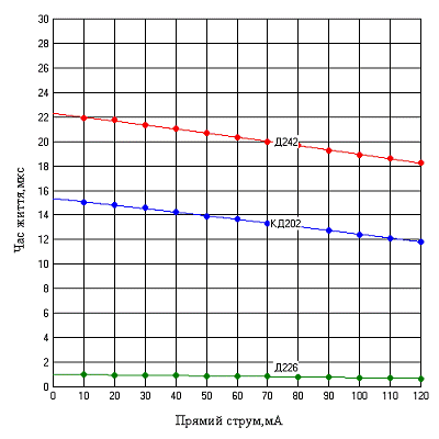 заряду перемикання досліджуваних діодів
