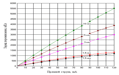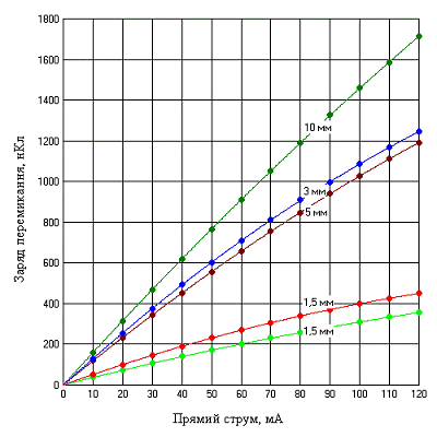 залежності заряду перемикання від прямого струму для епітаксіальних та