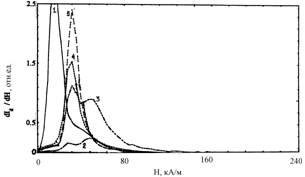 составляющими покрытий [5,6]. Анализ кривых dМ(H) и cdirr(H) позволяет обнаружить связь процессов перемагничивания с