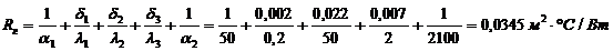 термические сопротивления, коэффициенты теплопередачи и количество передаваемой