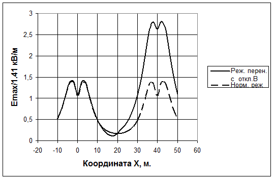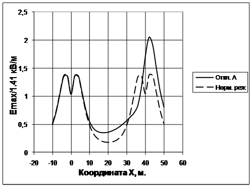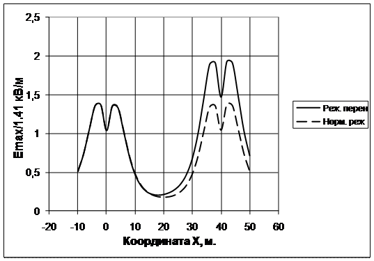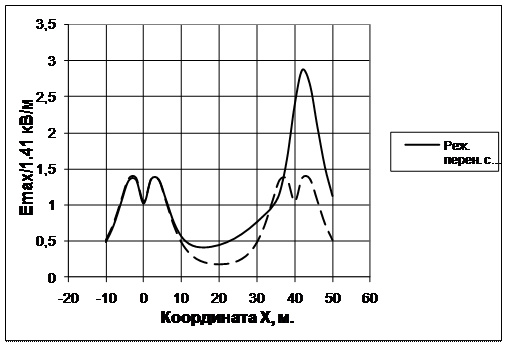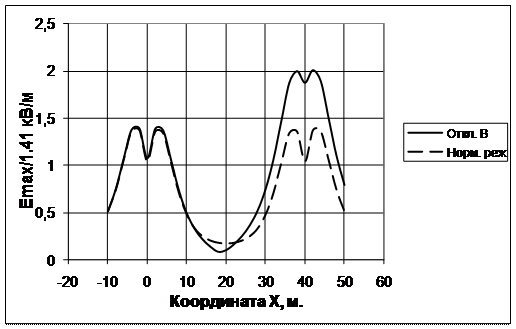электрического поля 16-ти коридоров в нормальных и аварийных режимах.