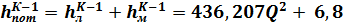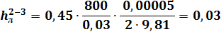 значение удельной кинетической энергии на каждом участке трубопровода: