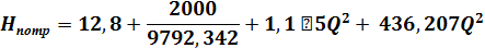 напором насоса. Напор насоса является функций его объёмной подачи, т.е. объёма