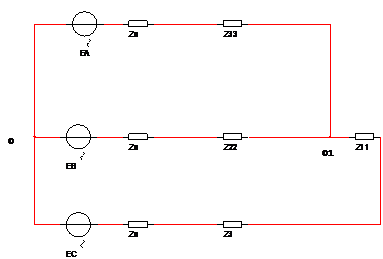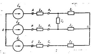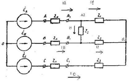 Определим потенциалы А1 и В1 узлов схемы и напряжения на ZЛ фаз А и В:
