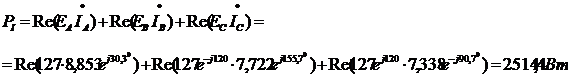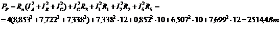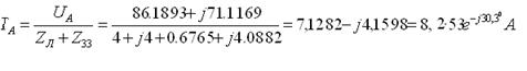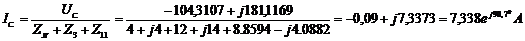 IC) = 1/3*(7,1282 – j4,1598+1ej120 *(-7,0382 – j3,1775)+ 1ej240 *(-0,09+j7,3373))=6,599 – j4,086 = 7,76e-j31,8A