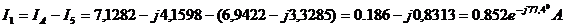 j4,1598+1ej240 *(-7,0382 – j3,1775)+ 1ej120 *(-0,09+j7,3373))=0,529 – j0,074 = 0,53e-j8A