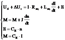 Паспортные данные электродвигателя М: номинальное напряжение Uн, номинальная скорость nн, номинальный ток Iн, момент инерции
