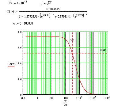 частоте среза и периодом равным периоду дискретизации фильтра: