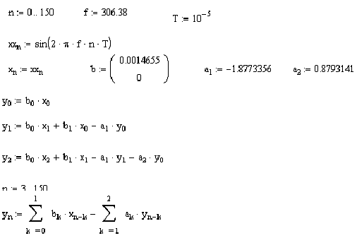 Построим импульсную характеристику в математическом пакете Mathcad 2000:
