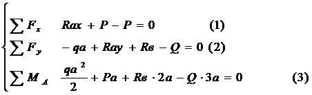 расчетной схеме плоской системы сил составляем 3 уравнения: два уравнения сил в