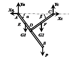 соединённых шарнирно в т.D и прикреплённых к потолку