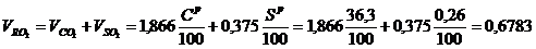 – изменение объема сухих продуктов горения в реальных условиях и при