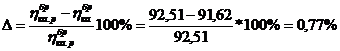 КПД котла (брутто) этим методом по сравнению с расчетным (92,51%) составила