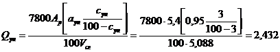 где aун=0,95 – доля золы топлива в уносе; сун=3%